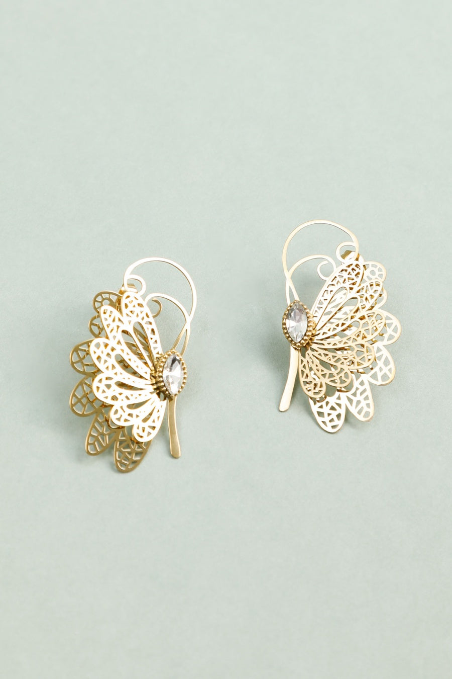 Boucles d'Oreilles Papillon Féérique Ajouré et Strass
