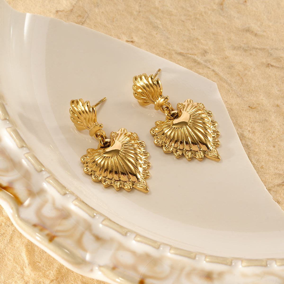Boucles d'oreilles pendantes cœurs ex-voto texturés . Tous nos produits sont fabriqués en acier inoxydable, un matériel qui résiste à l'eau et au temps, ils sont garantis sans plomb, sans nickel et sans cadmium.